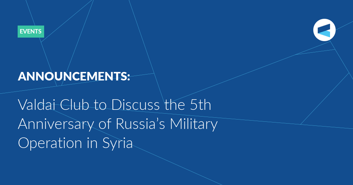 On September 30 at 12:00 noon, the Valdai Club will hold an online discussion, timed to coincide with the 5th anniversary of the start of Russia’s military operation in Syria.